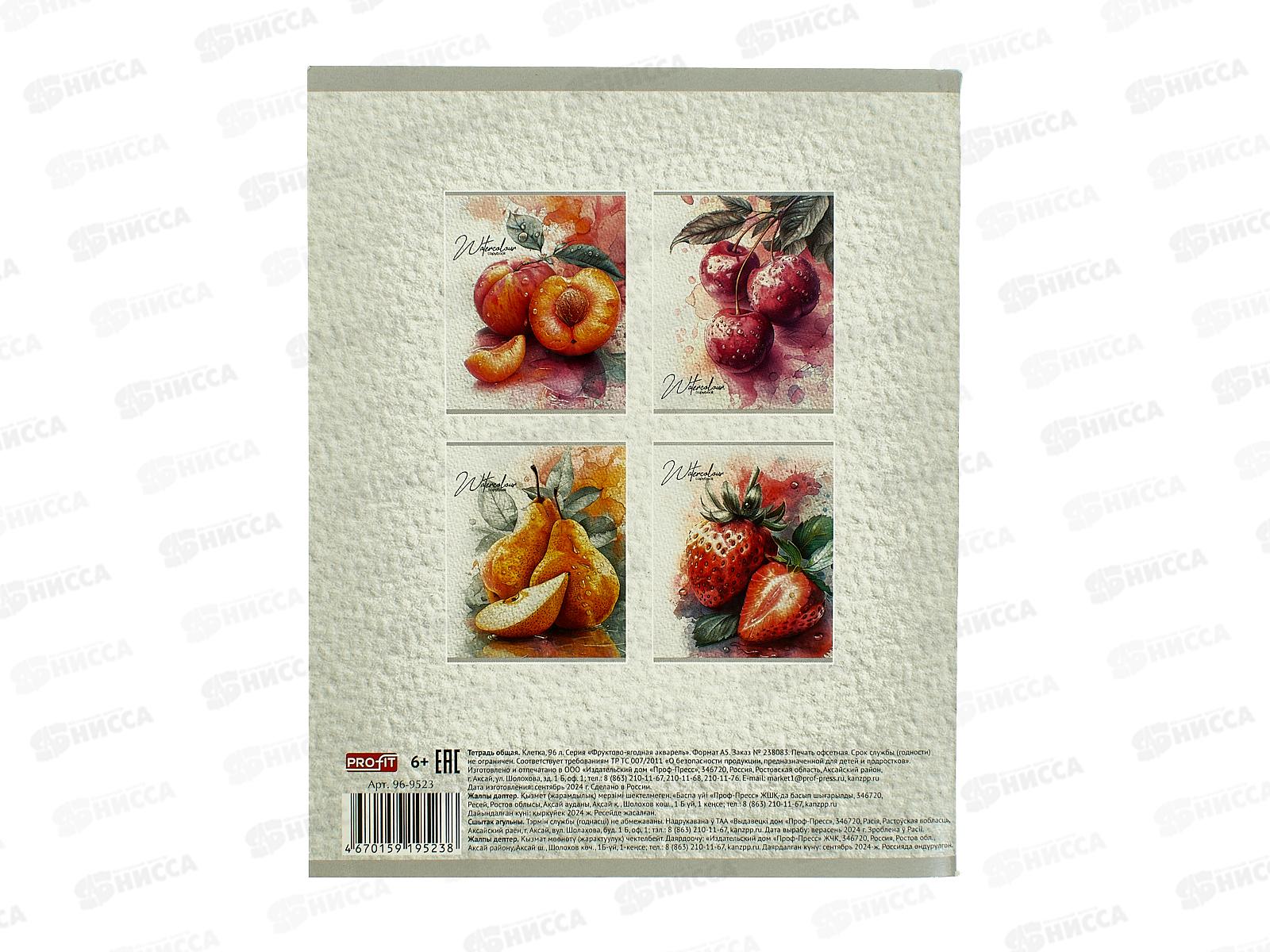 Тетрадь 96л клетка Profit Фруктово-ягодная акварель, мел., 96-9523 *6/48