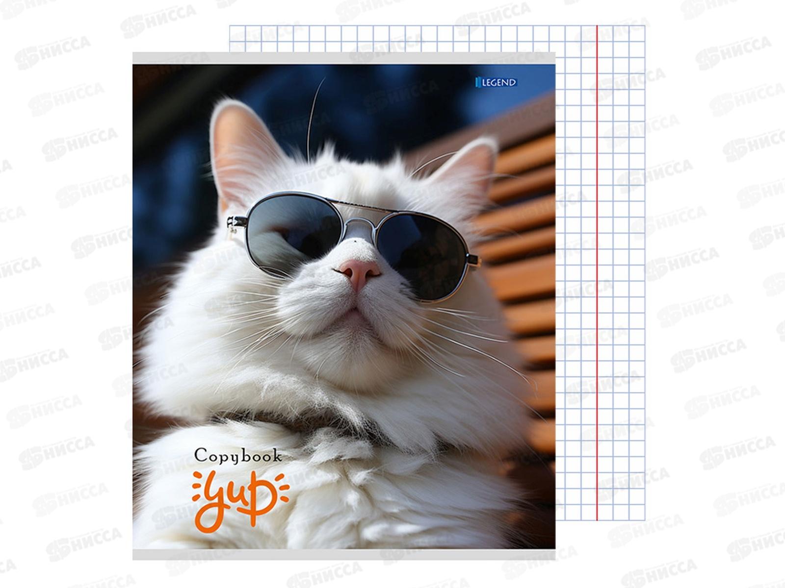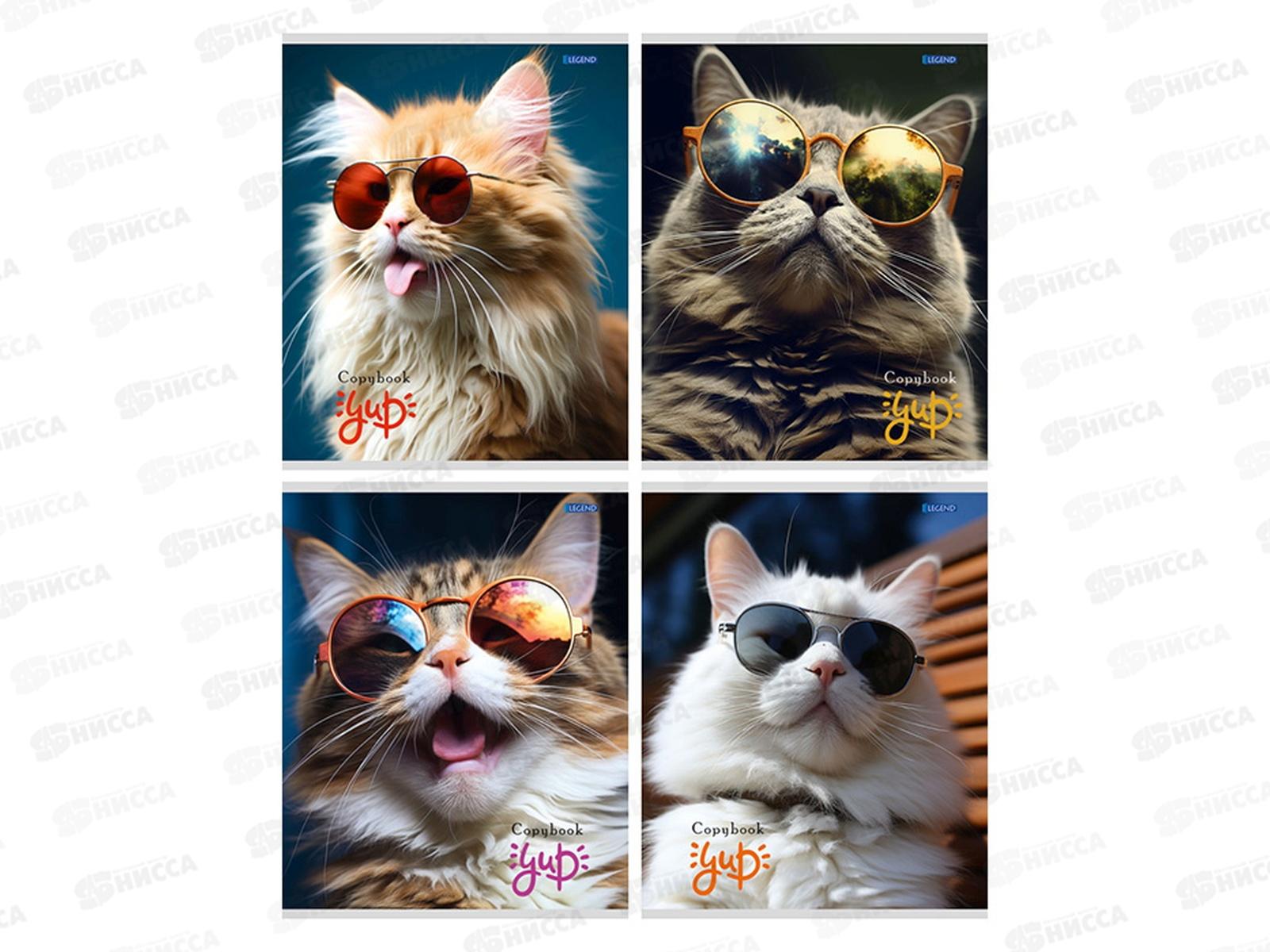 Тетрадь 48л клетка Legend Котики и очки, 4 диз., 48-3904 *100