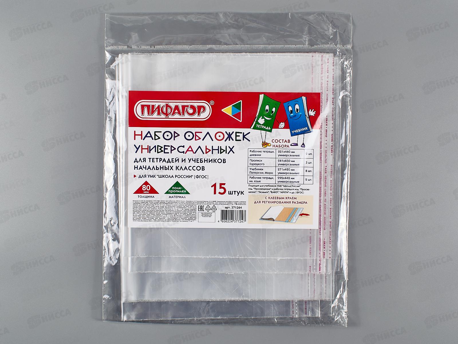 Обложка для тетрадей ПИФАГОР 15шт. 271264*50/500
