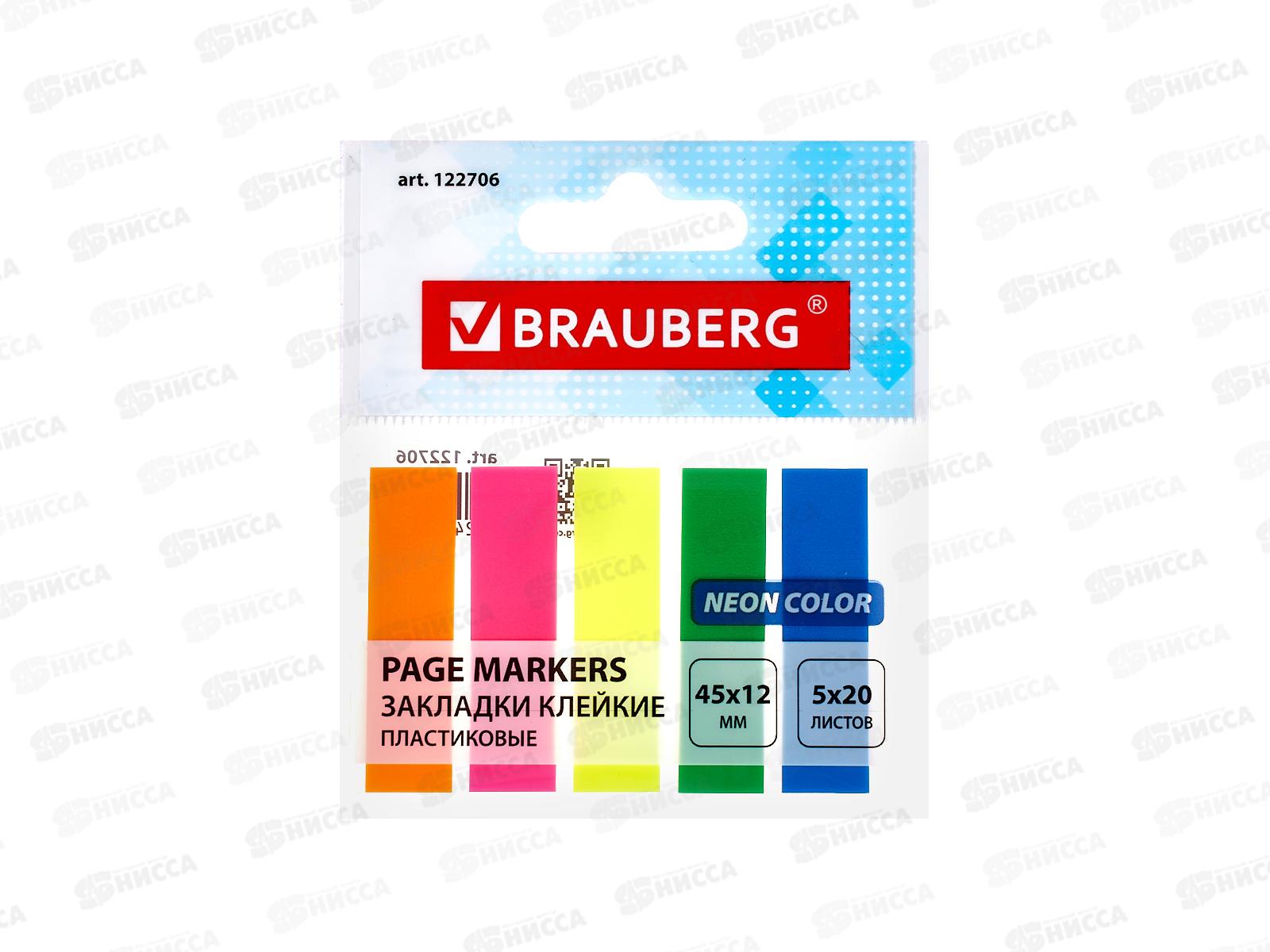 Закладки самоклеящиеся BRAU 45*12мм, 5 цветов, 20 листов, неоновые, 122706 *48