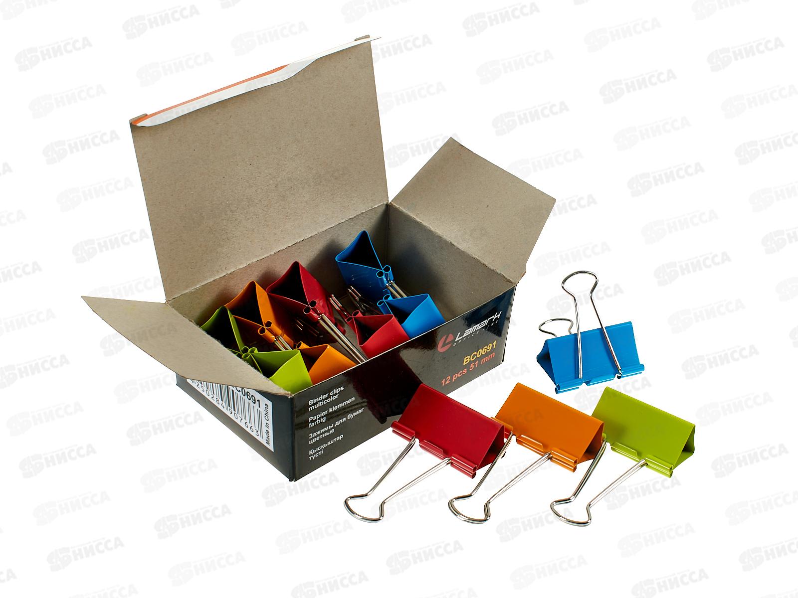 Зажим для бумаг LAMARK неоновый, картонная упаковка, BC0691 51мм 12шт *60