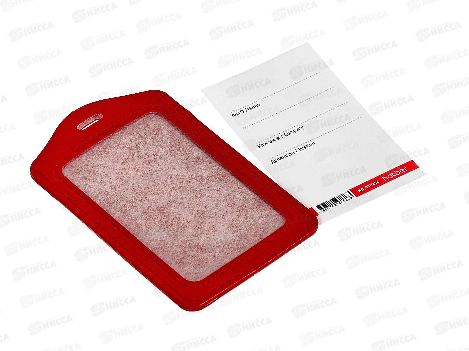 Бейдж Hatber вертикальный 72*112мм, красный, экокожа 079254*12