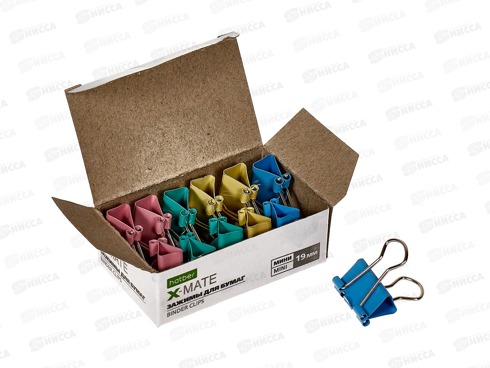 Зажим для бумаг 19мм 12шт Hatber X-Mate цветной, 083724*12/120