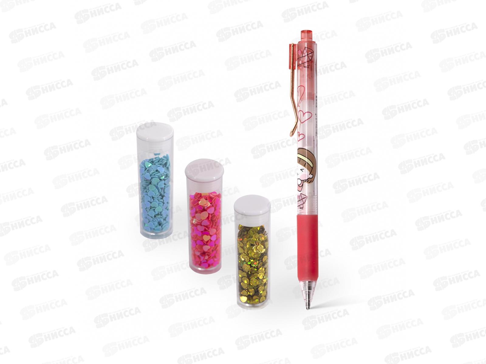 Клей-ручка Alingar с блестками сердечки,красный грип,AL13227