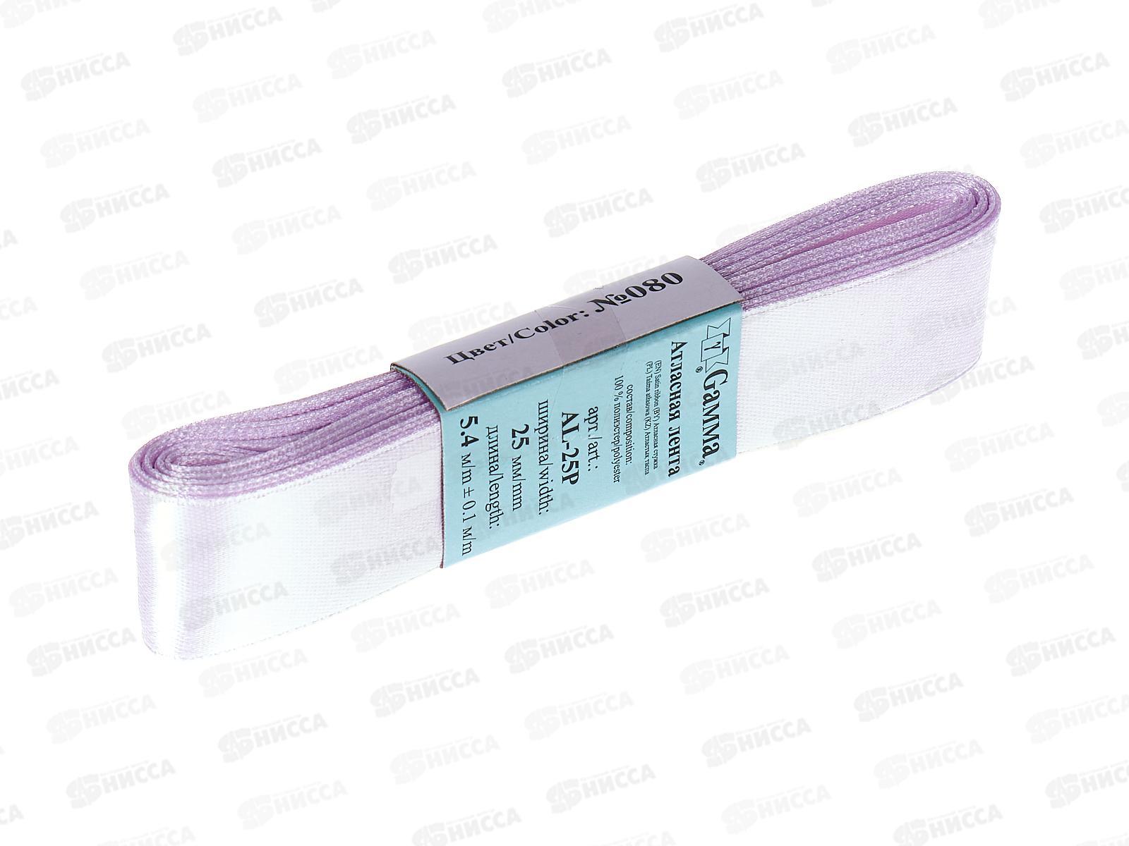 Лента атласная "Gamma" 25мм (1") №080 сиреневый, 5,4м AL-25Pфасовка