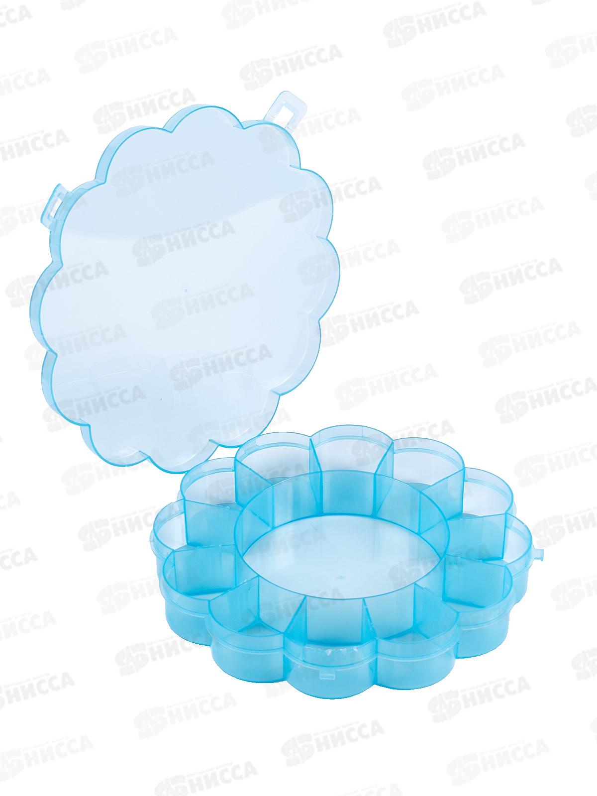 Коробка секционная круглая в виде цветка ромашки, с защелкивающейся крышкой. Предназначается для хранения бисера, бусин и прочих мелочей для рукоделия и шитья.