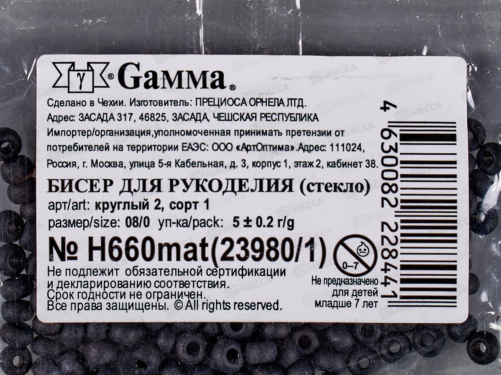 Бисер "GAMMA" Н660mat 08/0 круг., 5г, черный мат., 2.9мм, 23980/1