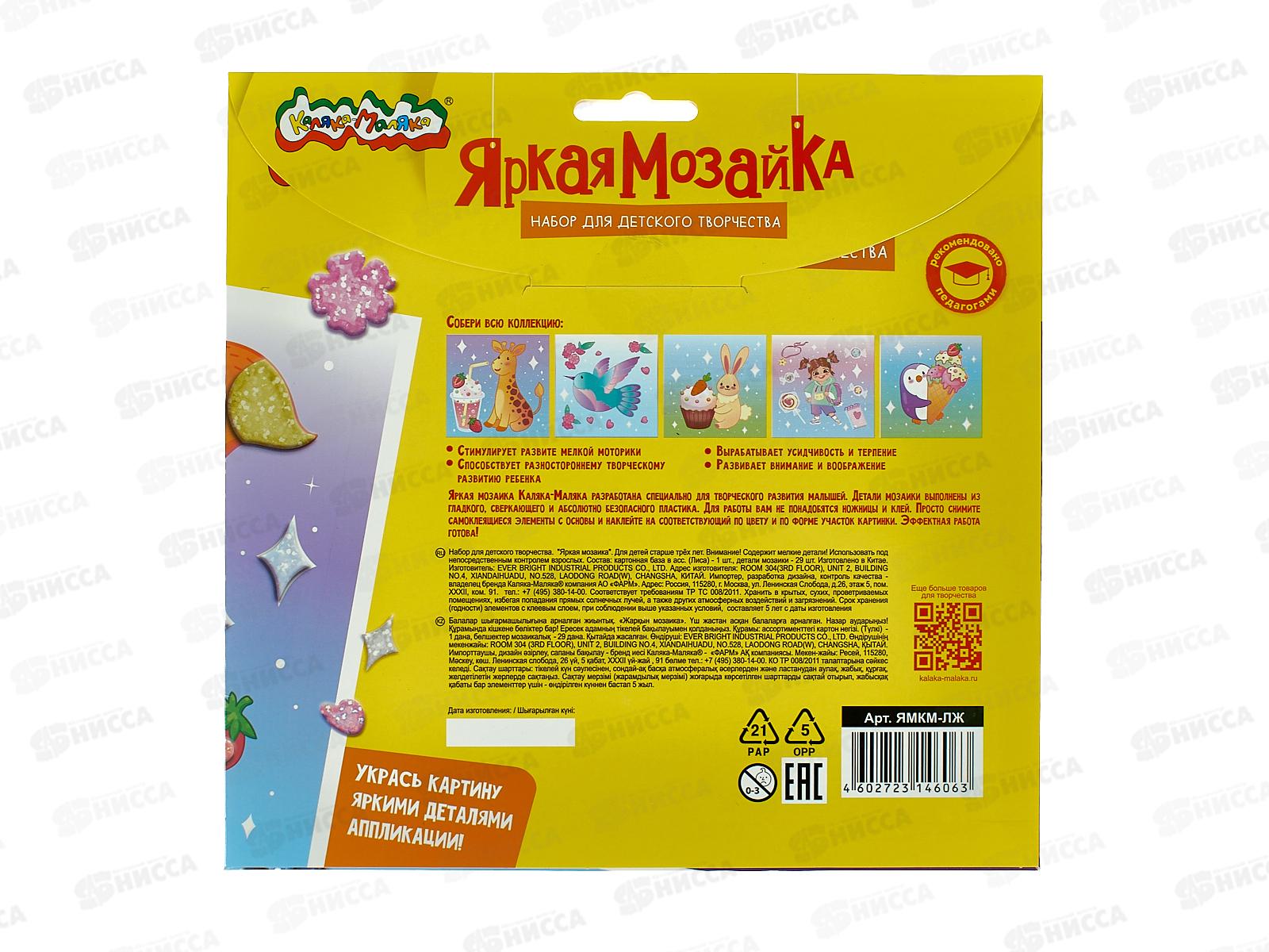 Набор д/ творч. Каляка-Маляка яркая мозаика ЛИСА 20*20см,ЯМКМ-ЛЖ