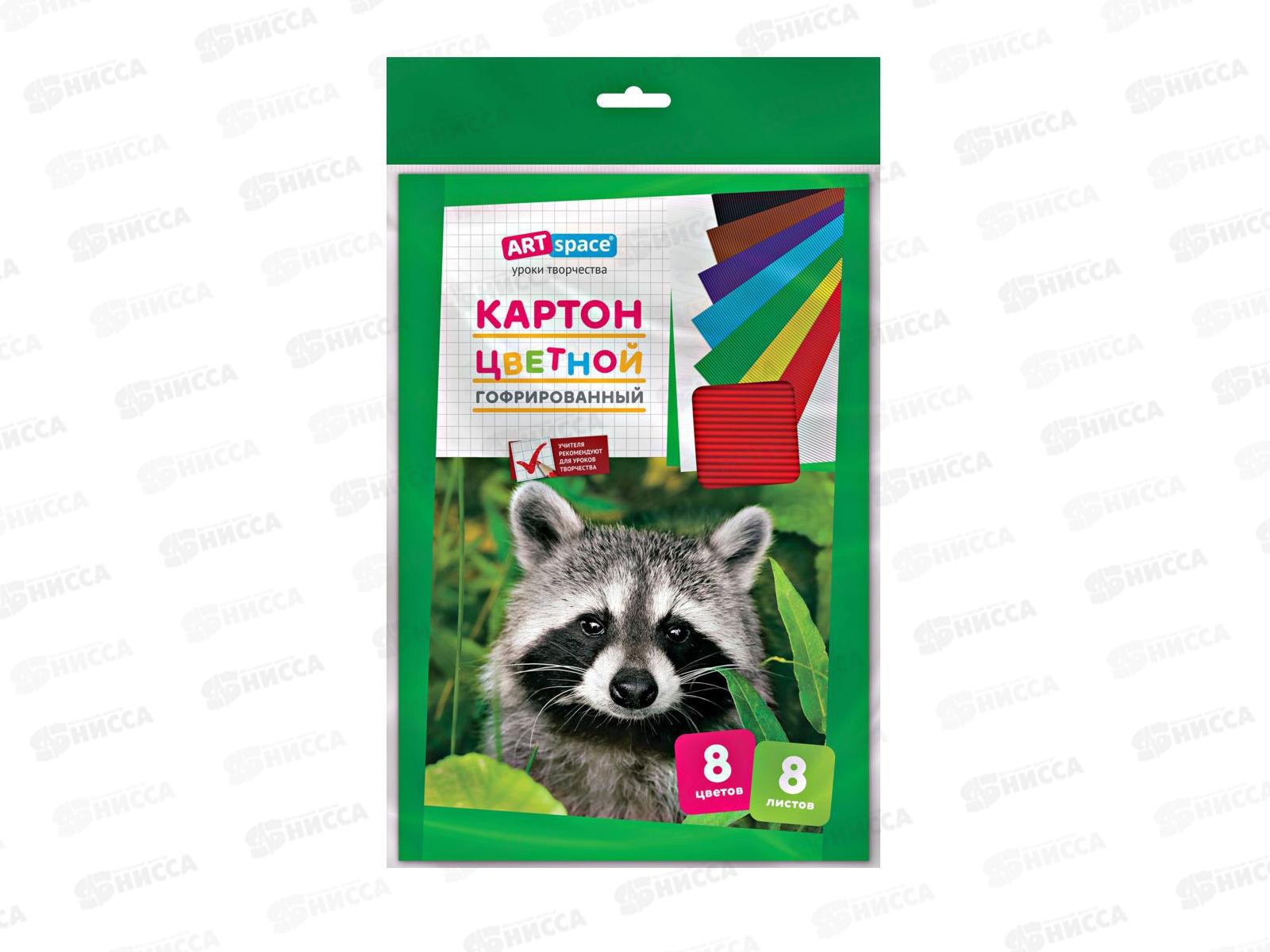 Цветной картон 8листов 8цветон А4 ArtSpace гофрированный, 18756