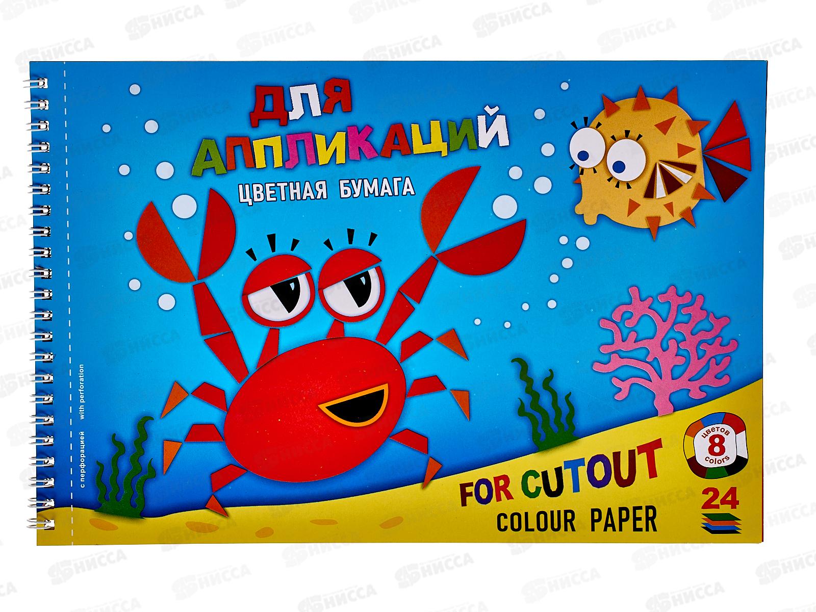 Цветная бумага двусторонняя 24л 8цв А4 ЛХ Крабик, на гребне, ПО-6833 *30