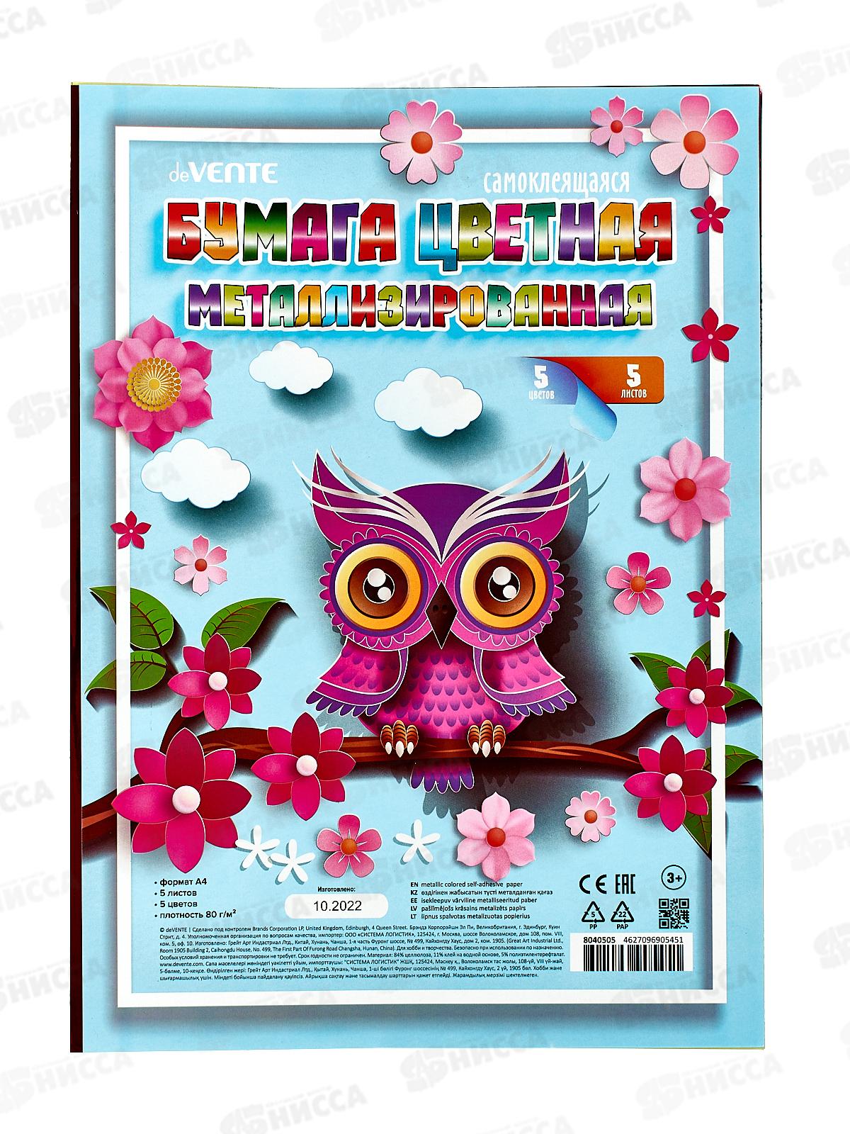 Цветная бумага deVENTE 5цв.,5л, самоклеящ., металлиз. 8040505
