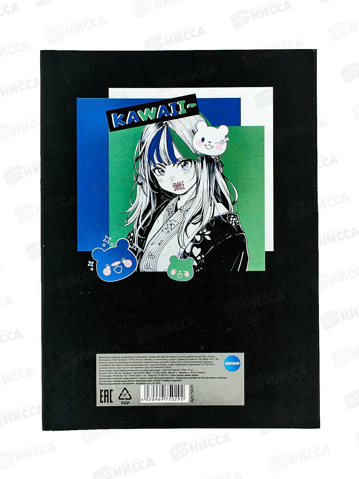 Цветной картон. Centrum 8л. 8цв. Анимэ Smile 75029 *30