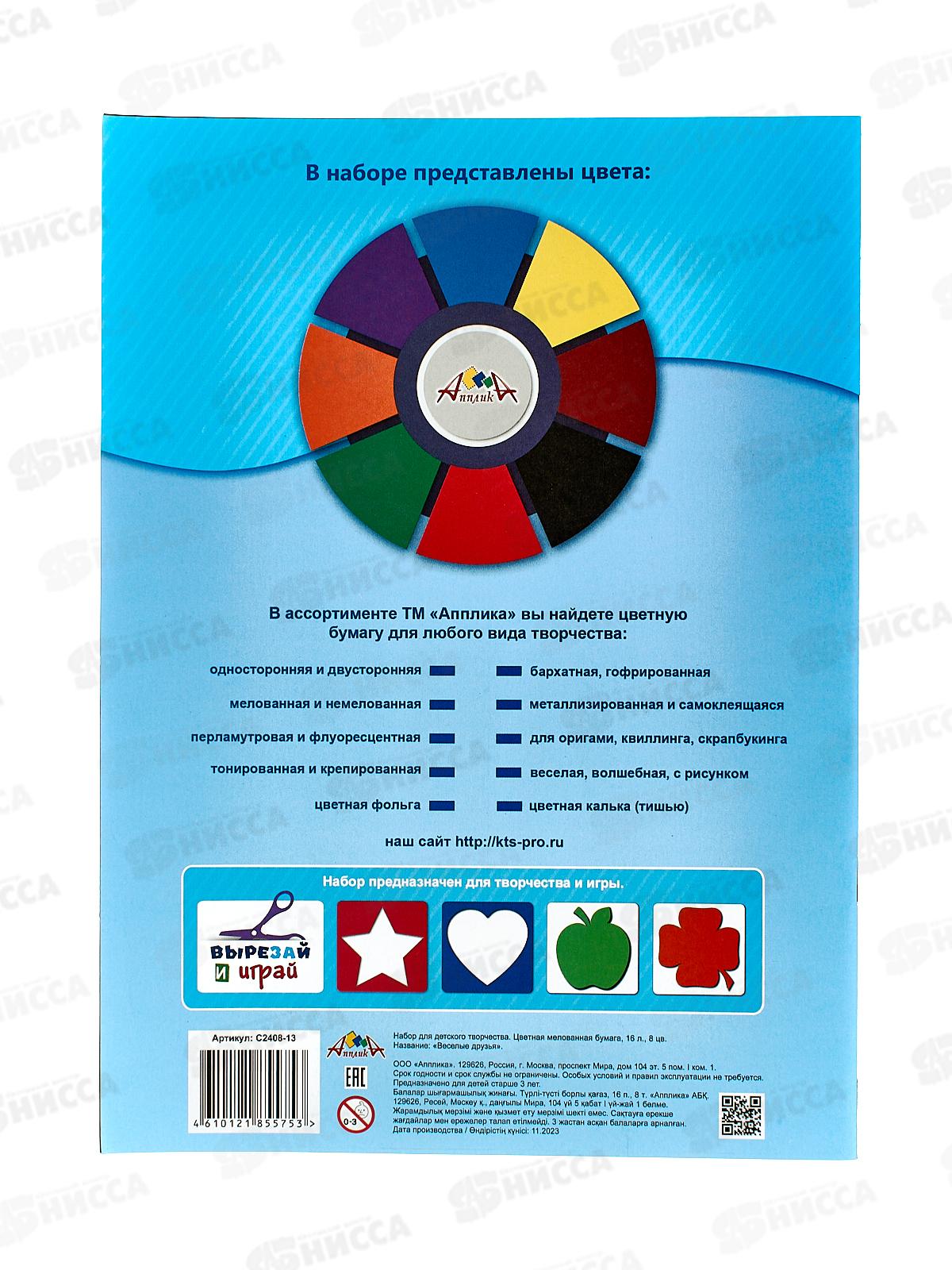Цветная бумага 16л 8цв Апплика Веселые друзья, С2408-13