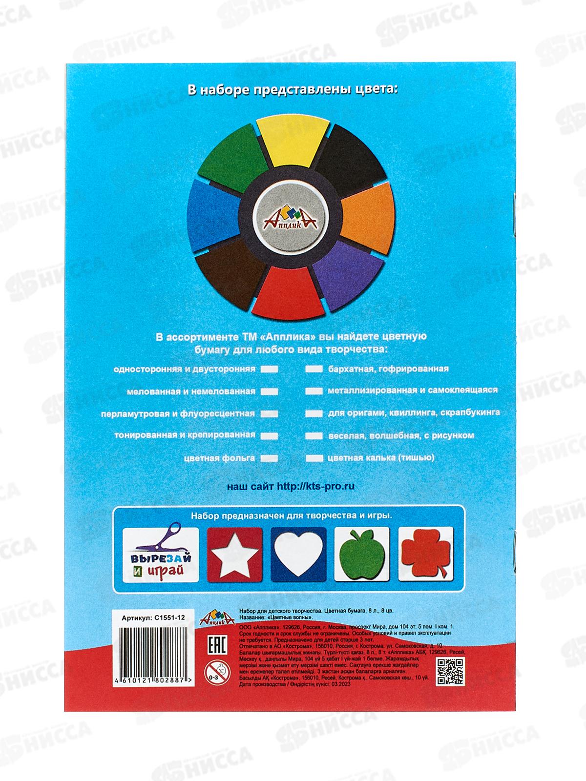 Цветная бум. 8л 8цв А5 Апплика Цветные волны С1551-12 *60
