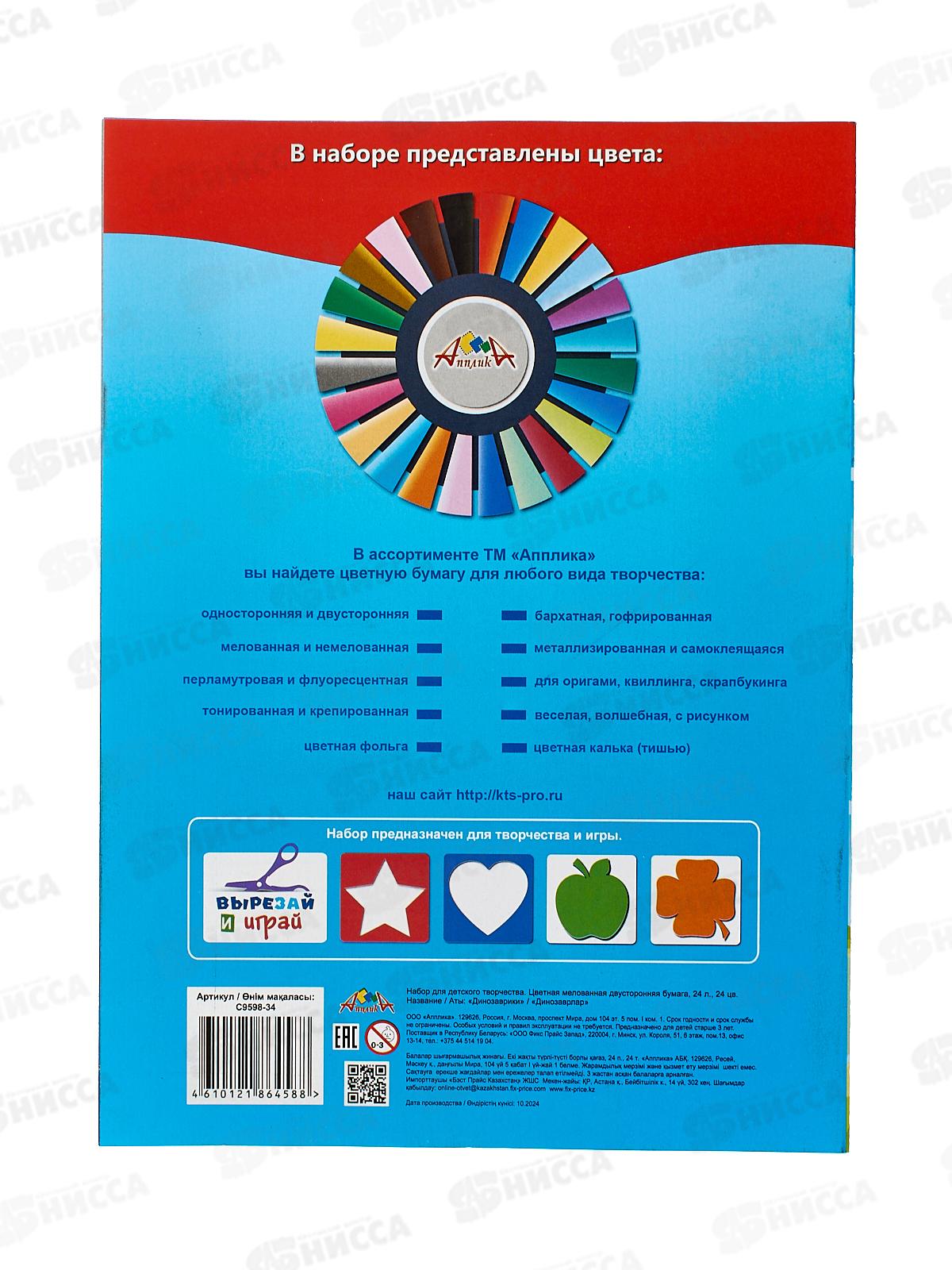Цветная бум. 8л 8цв Апплика Динозаврикики С9598-34 *60