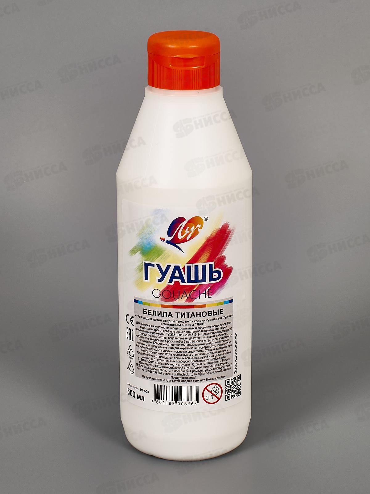 Гуашь ЛУЧ 500мл белила титановые, 18с1198-08 *8
