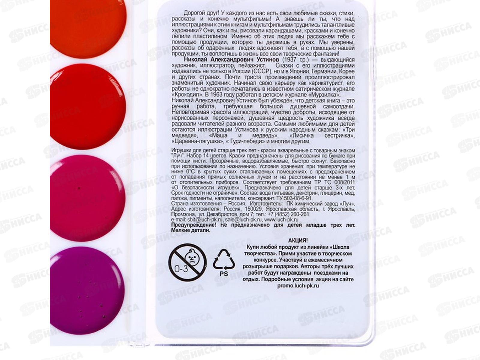 Акварель ЛУЧ медовая Школа творчества 14цветов, без кисти, пластиковая упаковка 29с1757-08*36