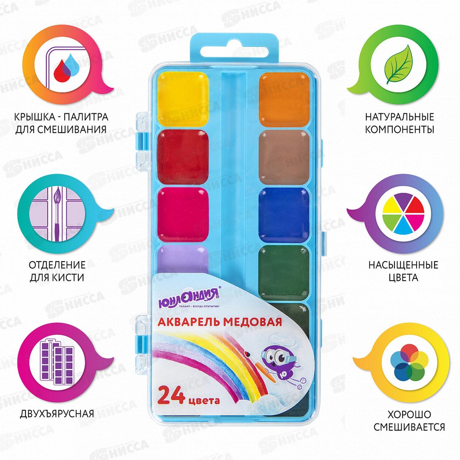 Акварель Юнладия 24цв, Юнландик-художник, медовая 192288 *12