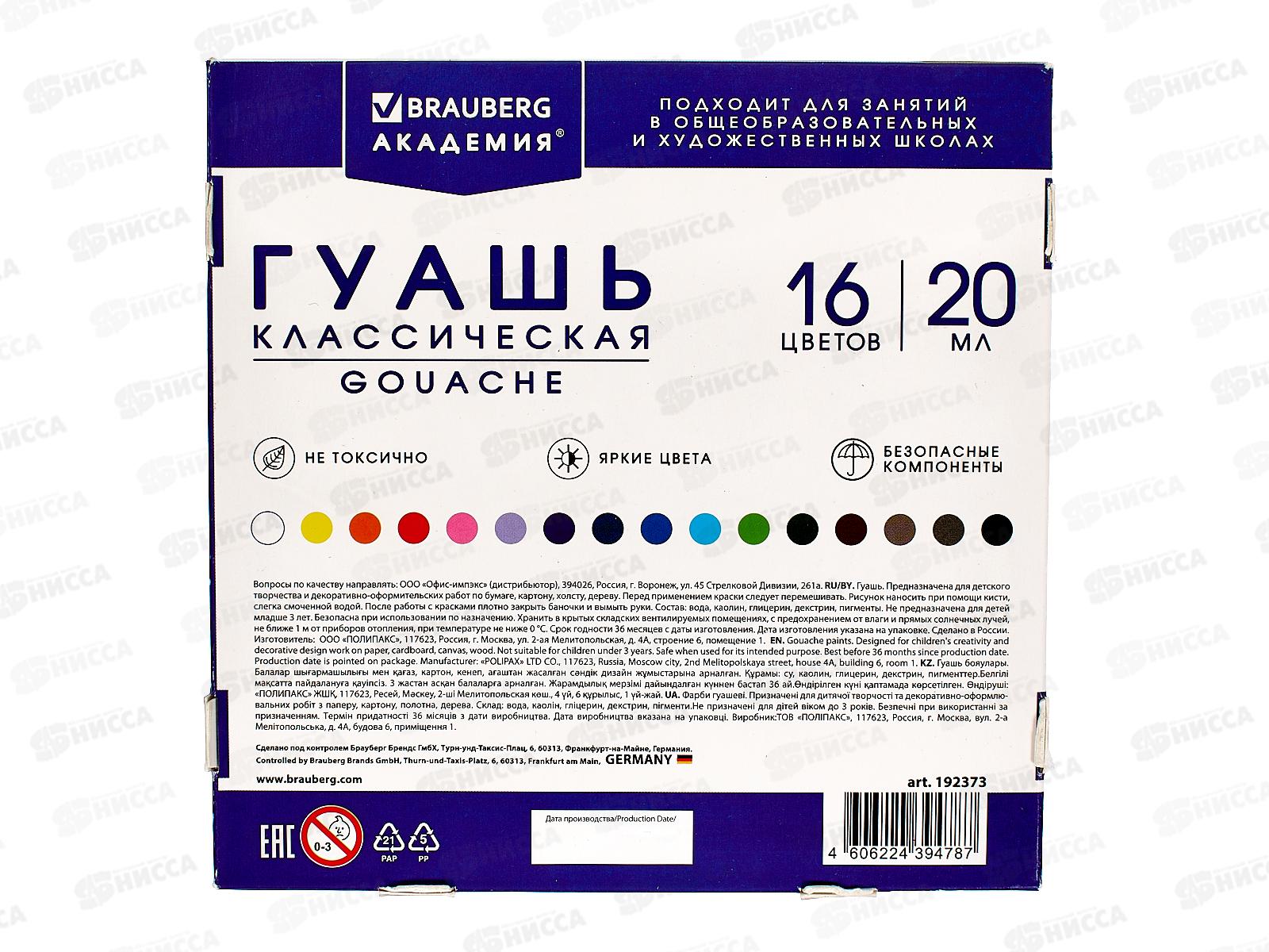 Гуашь художественная BRAU Академия классическая экстра 16цв 20мл, 192373 *12