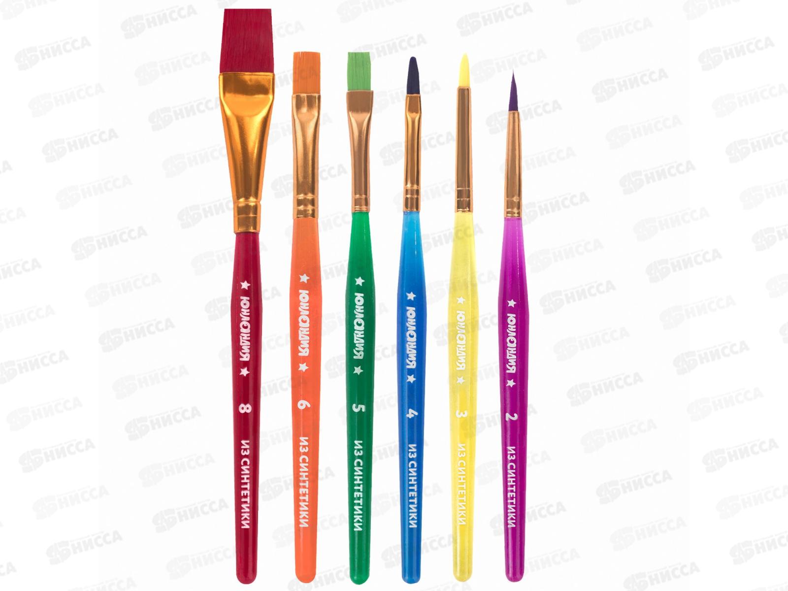 Кисти Юнландия набор 6шт(синтетика круглые №2,3 плоские №4,5,6,8) 200890