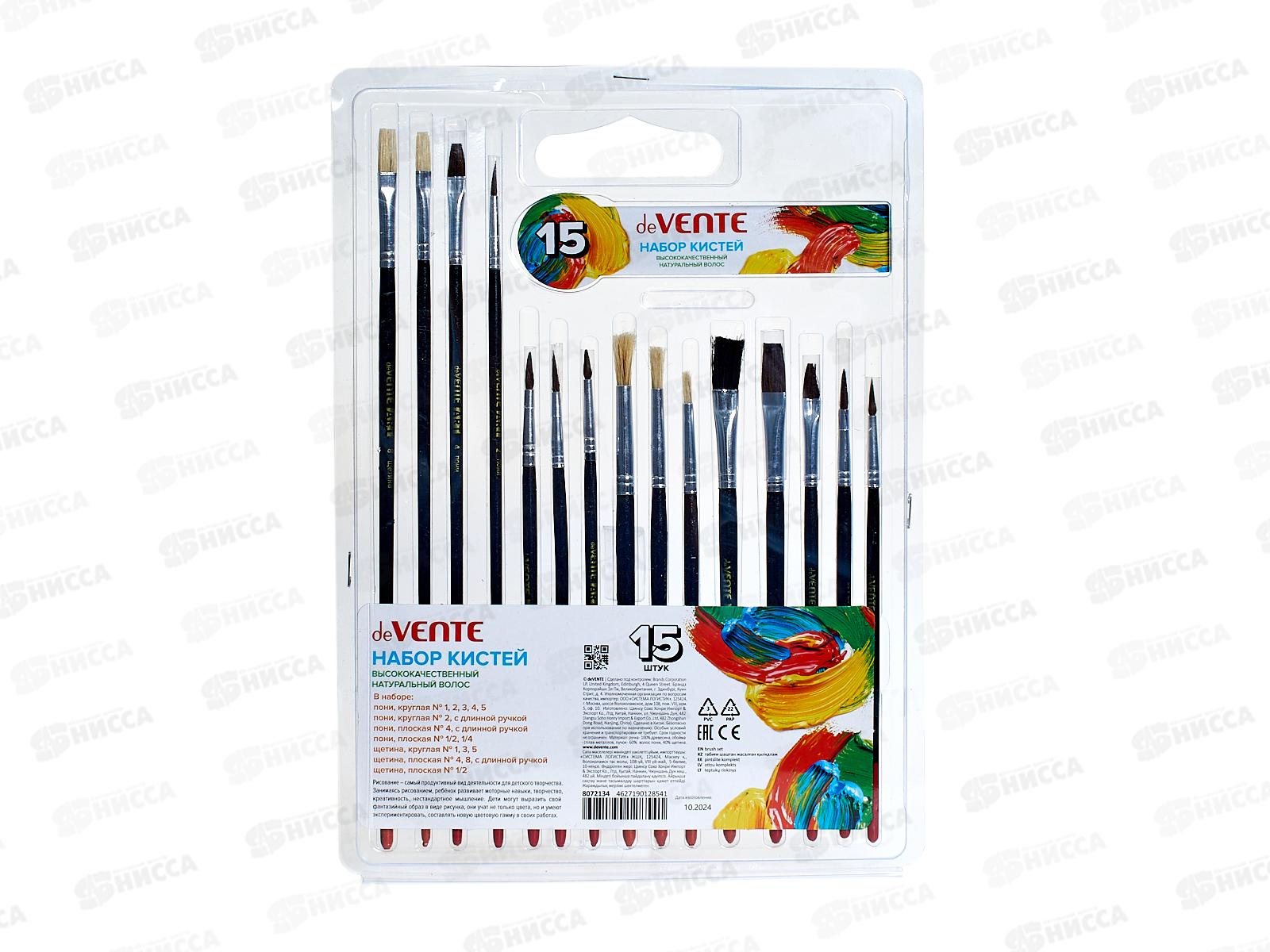 Кисти набор DeVente Art 15шт.пони круг, плоск. щетина 8072134