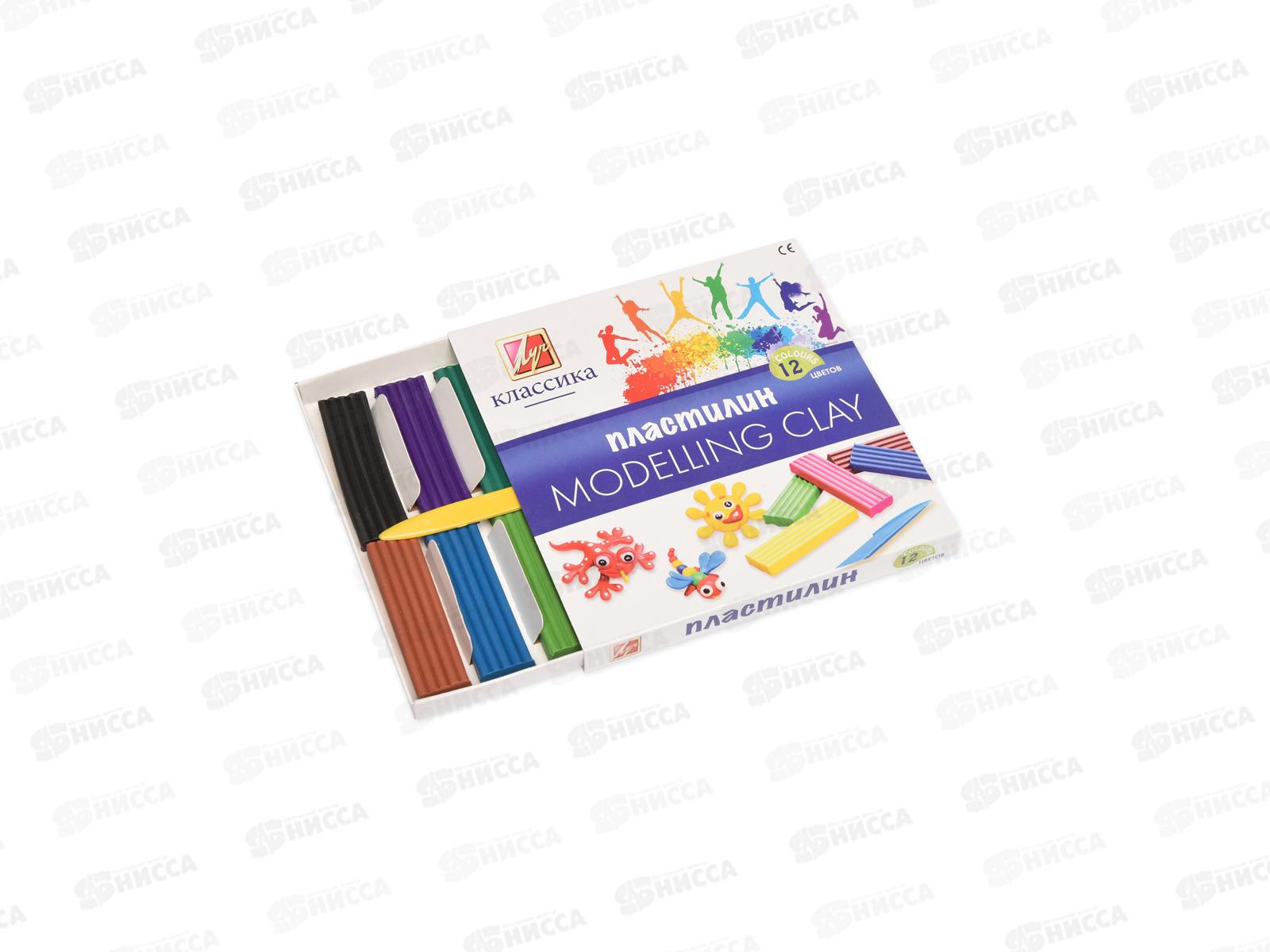Пластилин 12 цветов 240 грамм ЛУЧ Классика, картонная упаковка, 7с331-08 *20