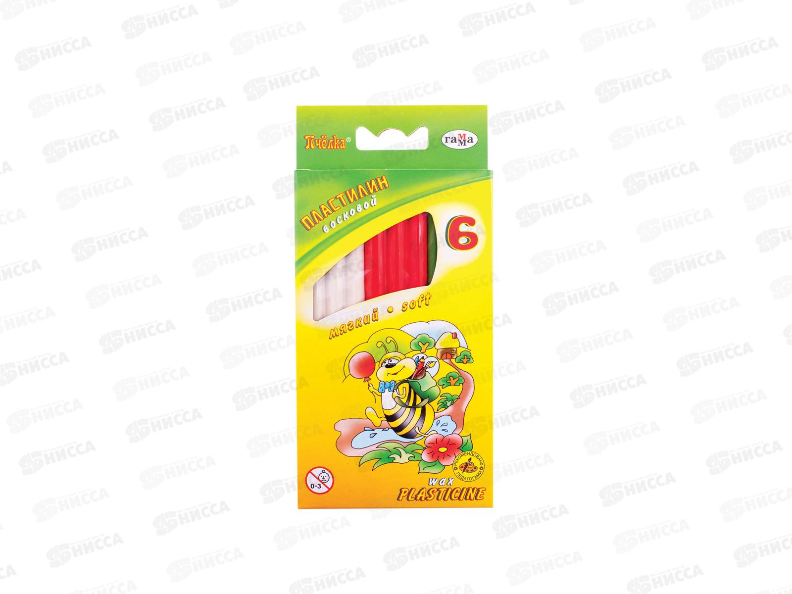 Пластилин 6цветов 90г ГАММА восковой Пчелка, со стеком,мягкие 280029Н *57