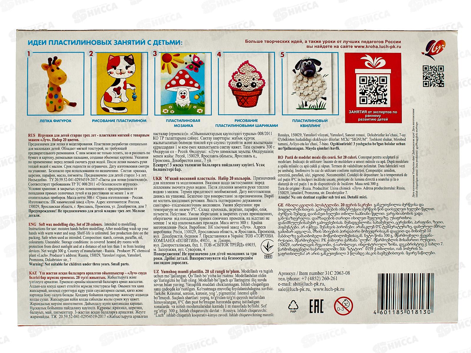 Пластилин 20цветов ЛУЧ Кроха, мягкий, к/у, 31С 2063-08*10