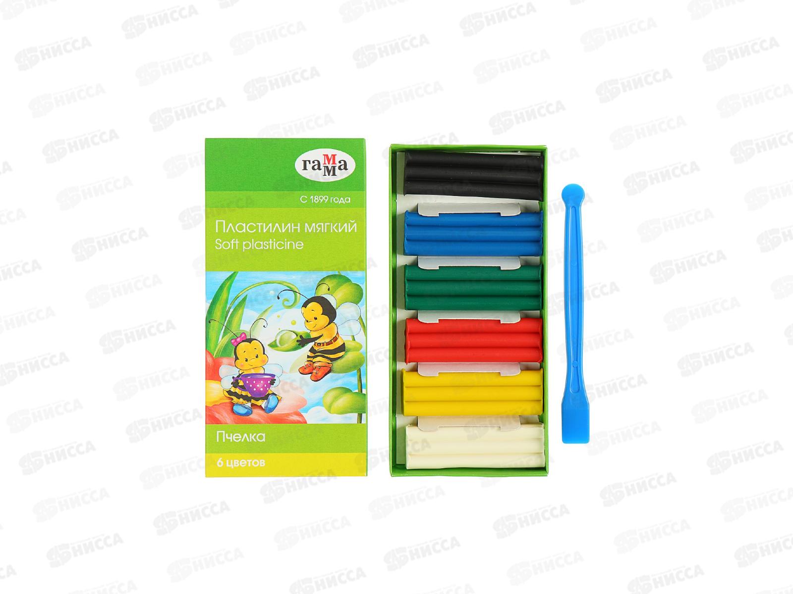 Пластилин 6 цветов 90 грамма ГАММА восковые, Пчелка, со стеком, 280029Н *57
