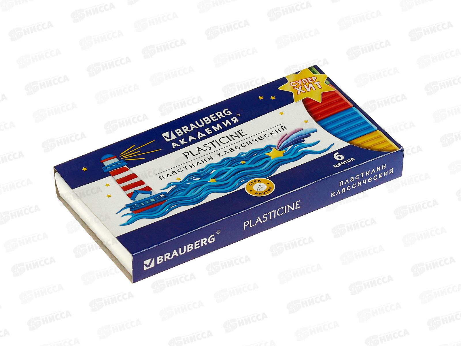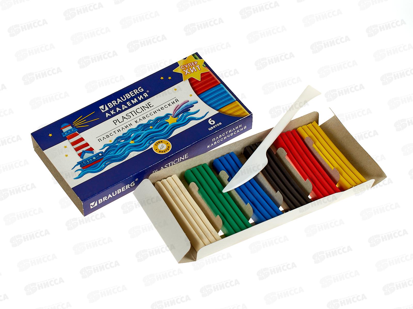 Пластилин 6цв 120г BRAU Академия классическая, стек, 106440 *30
