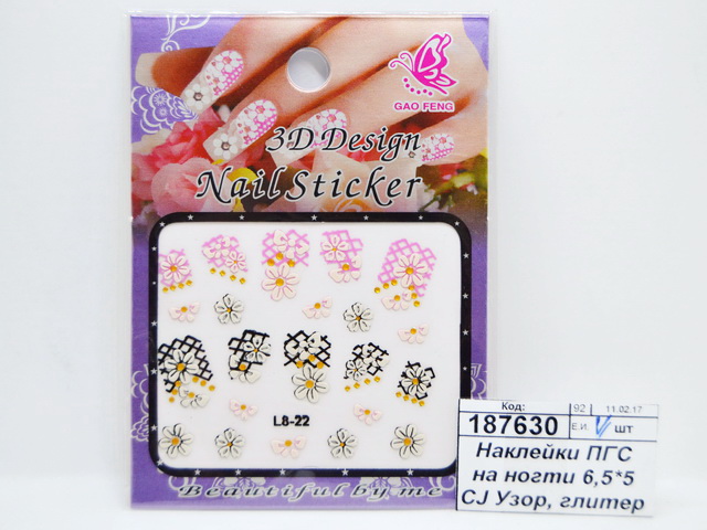 Наклейки ПГС на ногти 6,5*5 Узор, глитер CJ *12