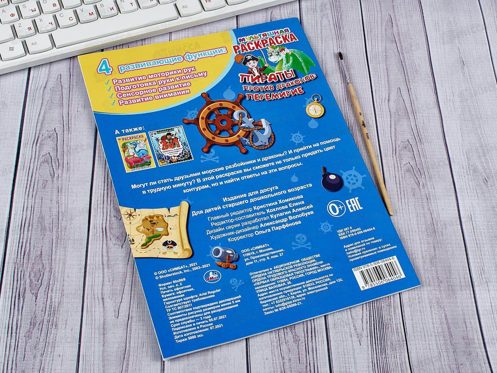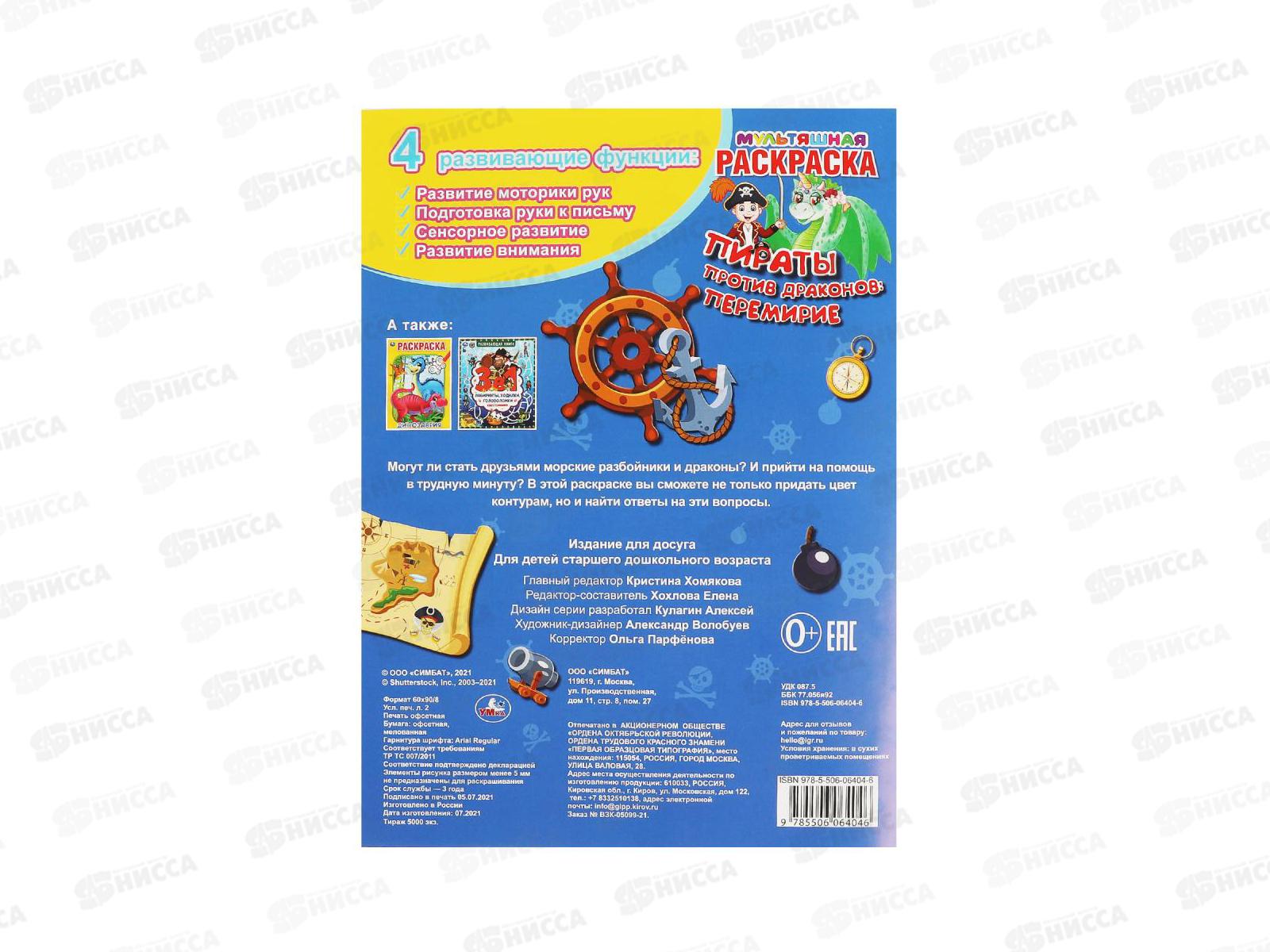 Мультяшная раскраска «Пираты против драконов: перемирие» ТМ «УМка» обязательно понравится маленьким художникам: