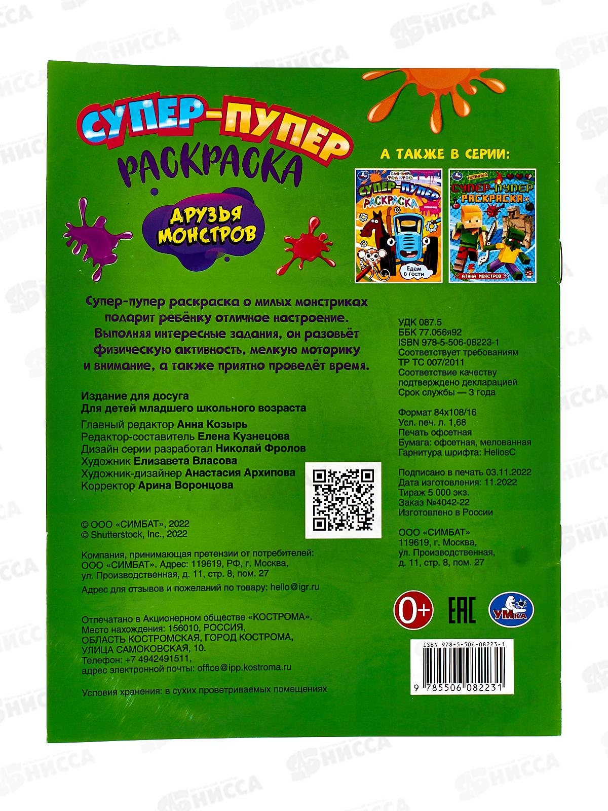 Супер-пупер раскраска «Друзья монстров» ТМ «УМка» станет отличным подарком для юных художников: