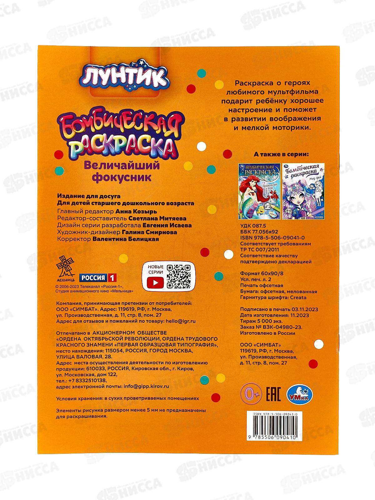 Бомбическая раскраска «Лунтик. Величайший фокусник» ТМ «УМка» обязательно понравится юным художникам: