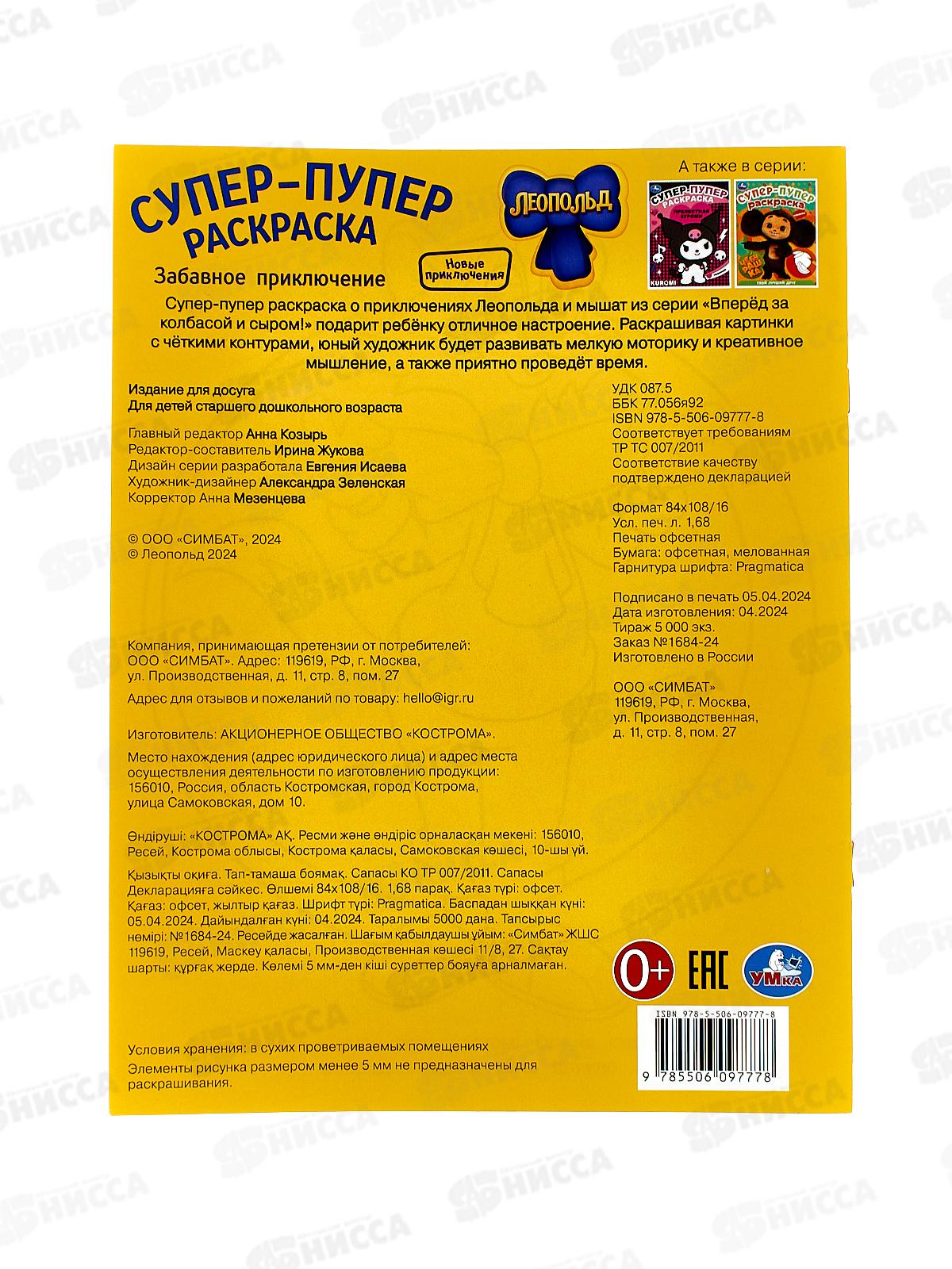 Раскраска "УМКА" 09777-8, Супер-пупер. Забавное приключение. Леопольд. 16стр. *50