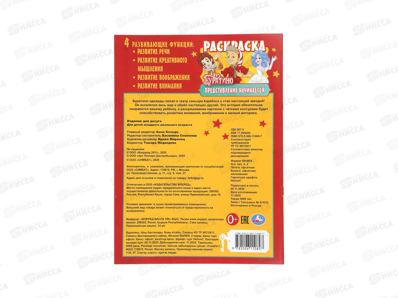 Раскраска "УМКА" 11089-7, Буратино, 214х290мм, 16стр.*50