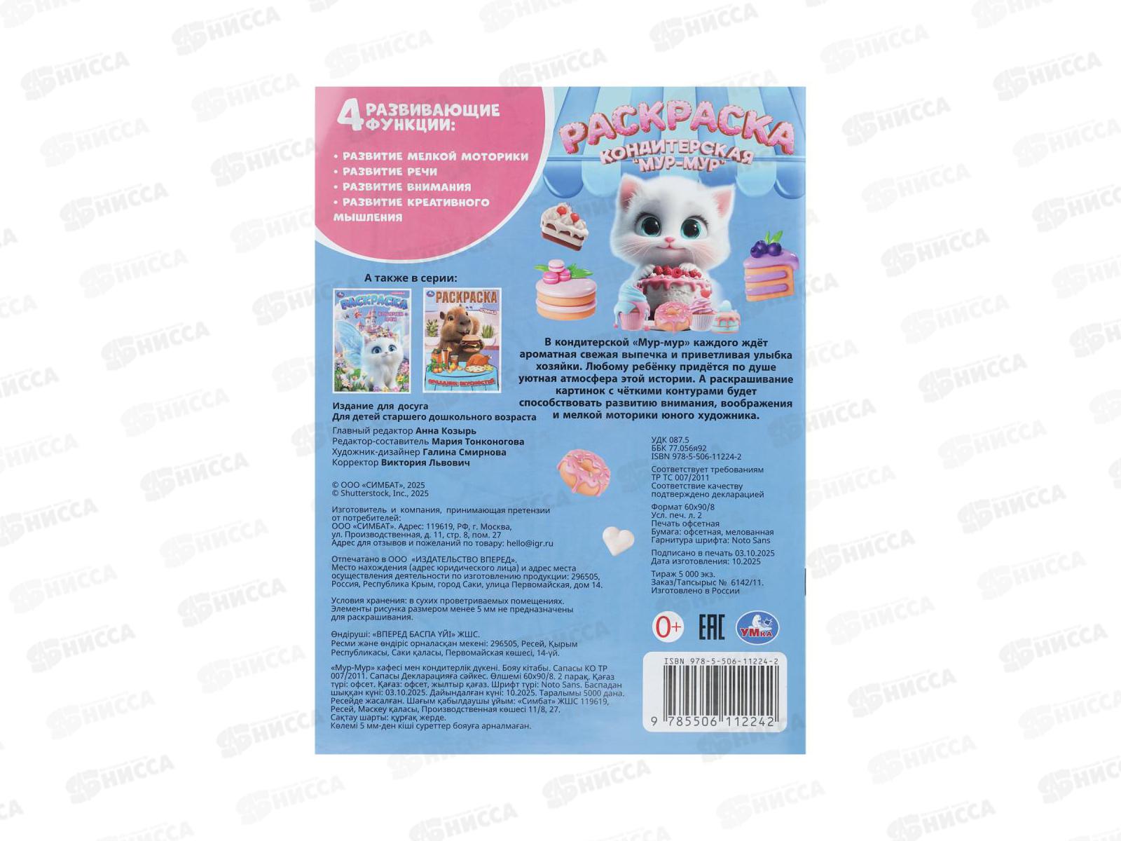 Раскраска "УМКА" 11224-2, Кондитерская "Мур-мур", 214х290мм 16стр.*50