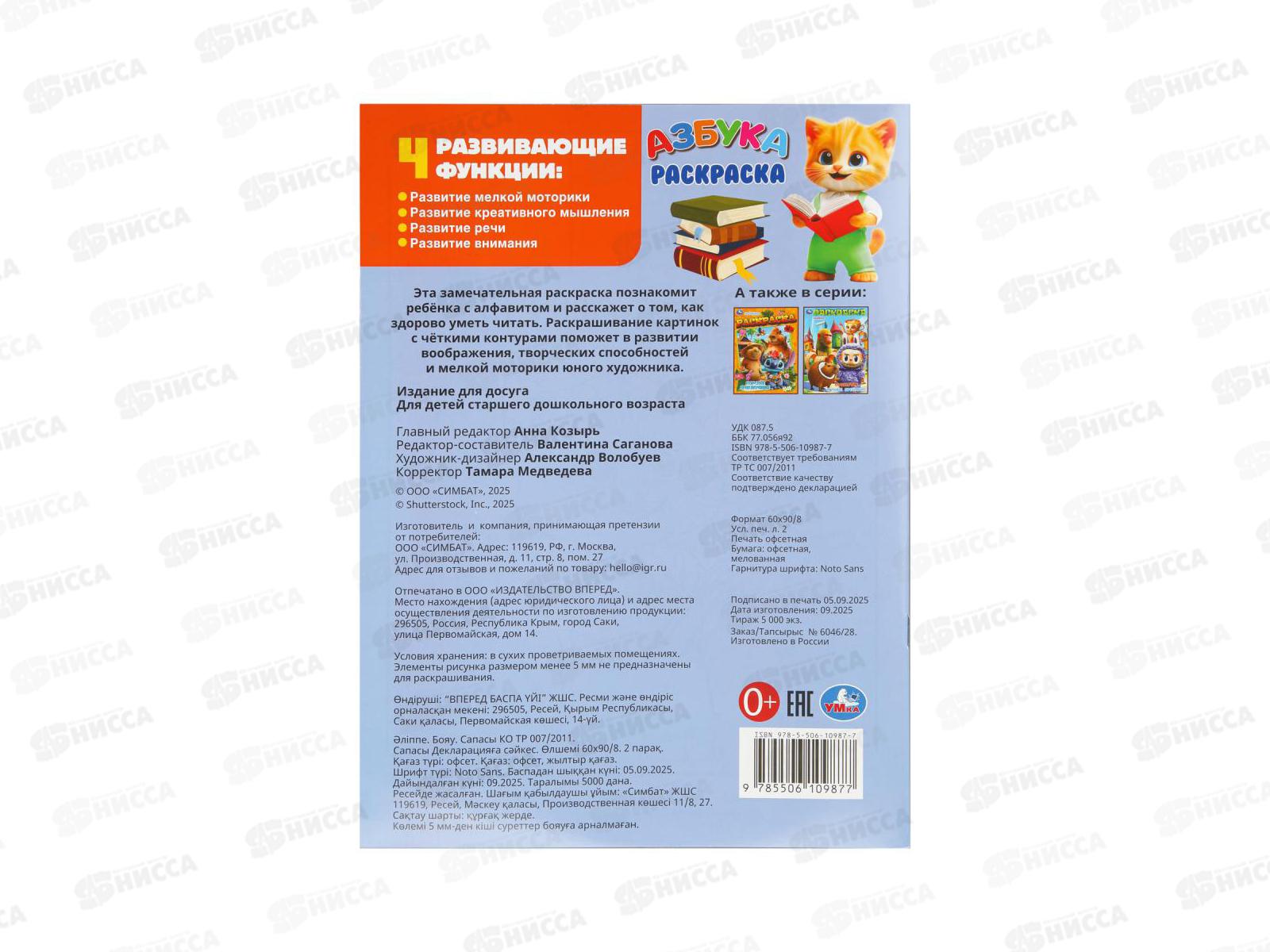 Раскраска "УМКА" 10987-7, Азбука, 214х290мм 16стр. *50