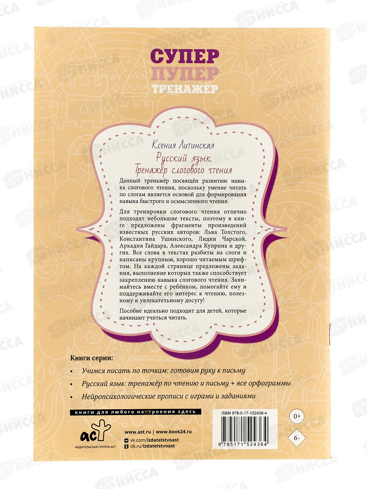 Книга АСТ Русский язык. Тренажер слогового чтения, Литинская К.В., 2436-4