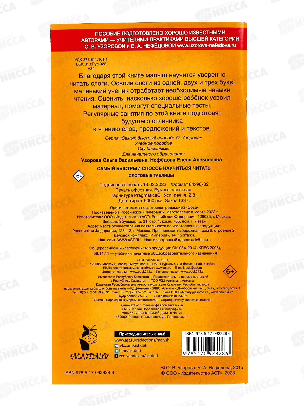 Книга АСТ Самый быстрый способ научиться читать. Слоговые таблицы, Узорова О.В., 2828-6