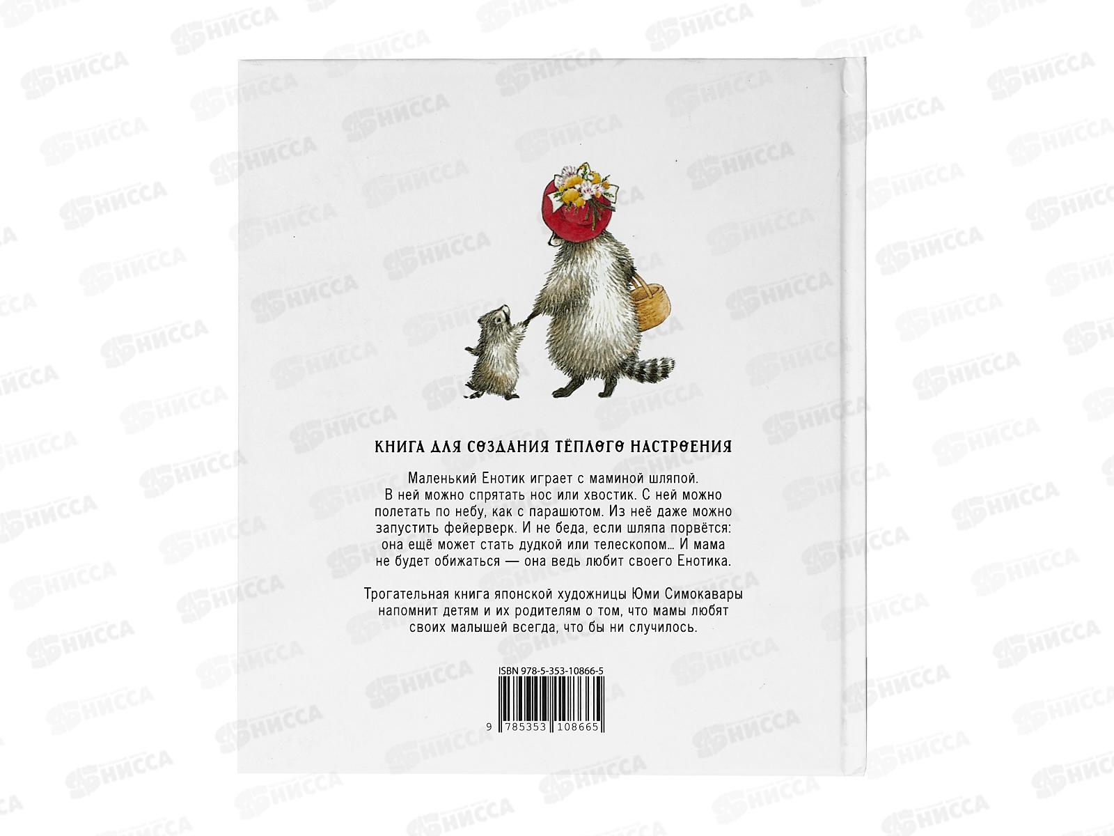 Маленький Енотик играет со шляпой. В ней можно спрятать нос или хвостик. С ней можно полетать по небу, как с парашютом. Из нее даже можно запустить фейерверк. И не беда, если шляпа порвется: она еще может стать и дудкой, и телескопом, и кондитерским шприцем Правда, шляпа-то мамина. Но мама не будет обижаться она ведь любит своего Енотика. Трогательная книга японской художницы Юми Симокавары напомнит детям и их родителям о том, что мамы любят своих малышей всегда, что бы ни случилось.