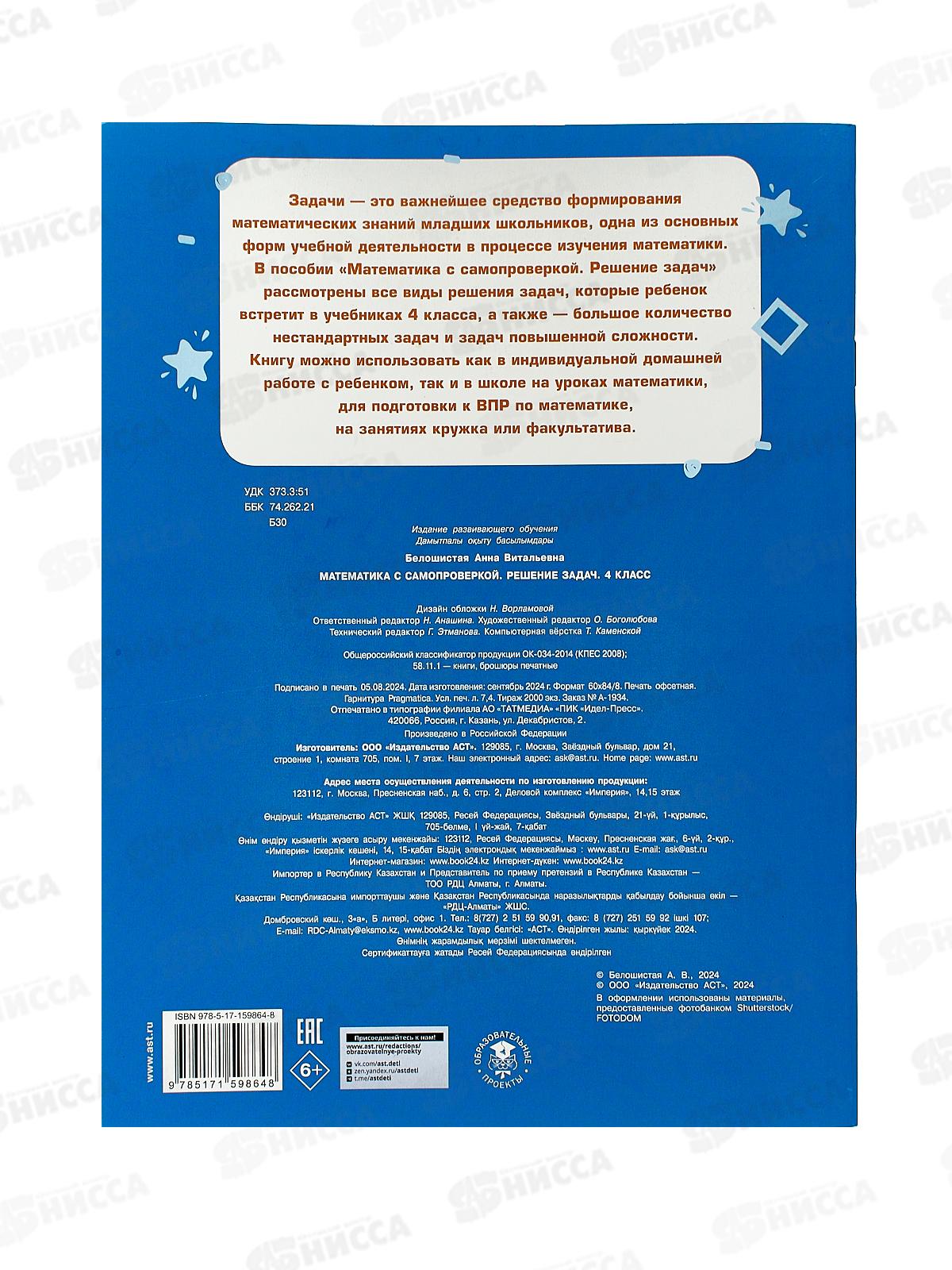 Книга АСТ Математика с самопроверкой. Решение задач. 4 класс, Белошистая А.В., 9864-8 *25