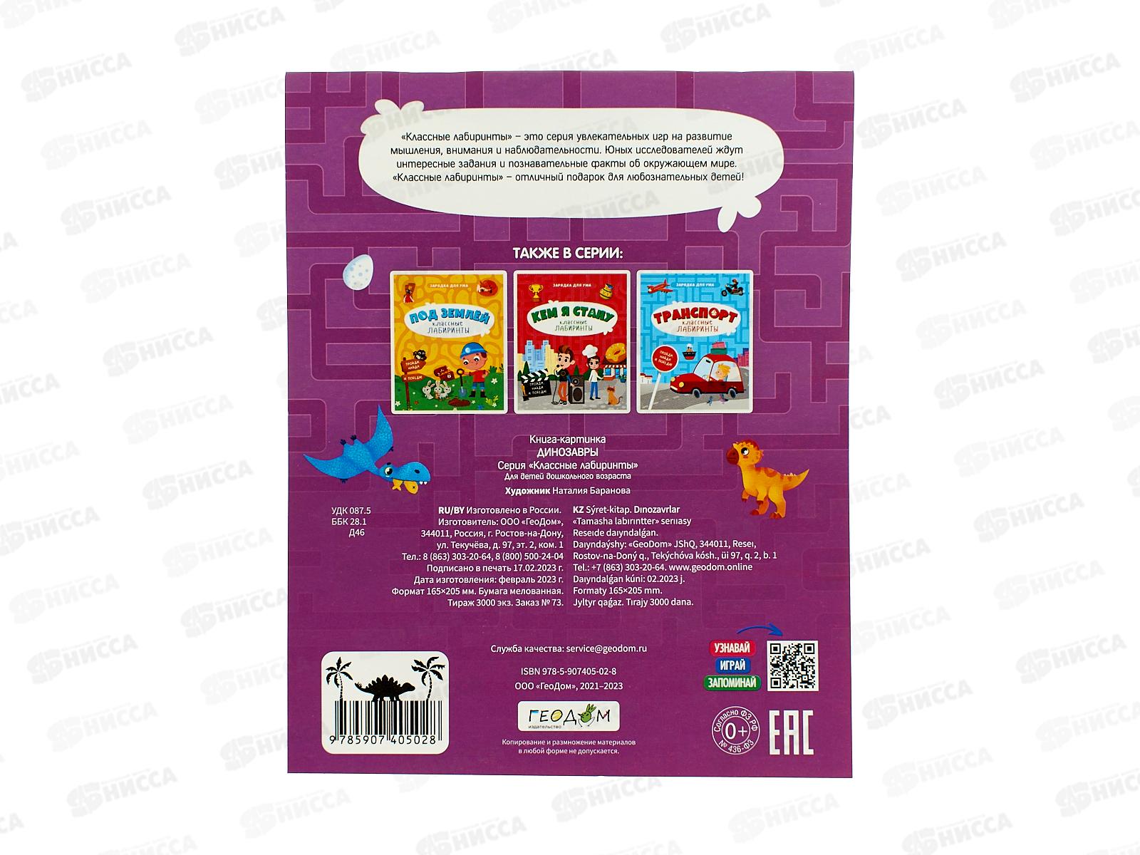 Книжка на скрепке.Серия Классные лабиринты.Динозавры 05028