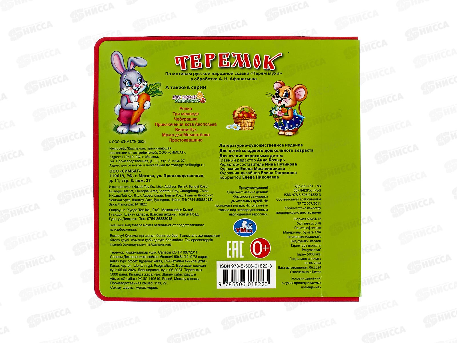 Книга 01822-3 Умка: Теремок (с 5 пазлами EVA)