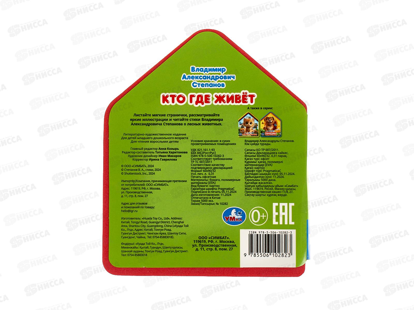 Книга 10282-3 Умка: Кто где живет (eva с фигурн. вырубкой) 117х96мм*30