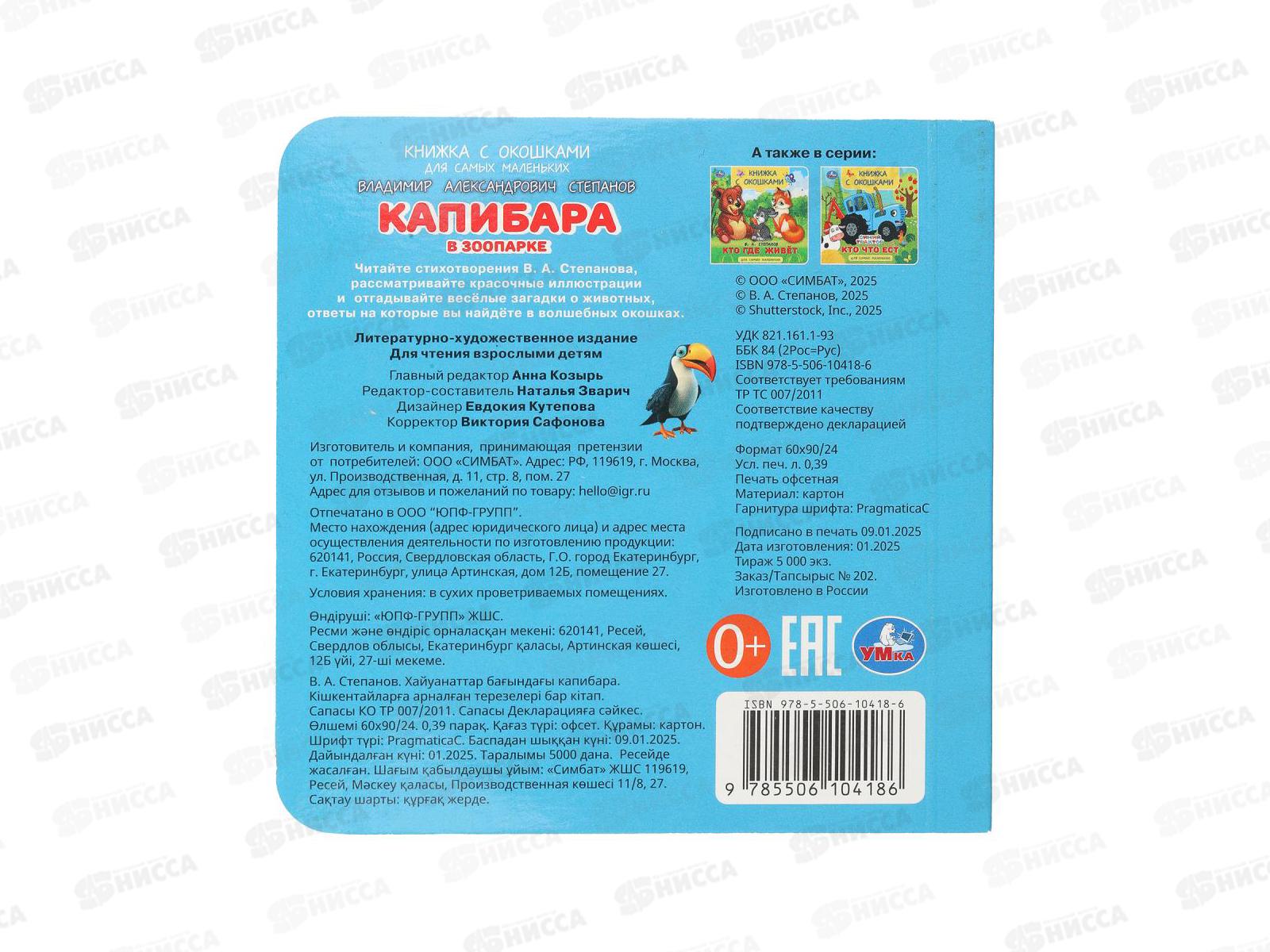 Книга 10418-6 Умка: Капибара в зоопарке (кн.-с окошками) 10стр. 120*120мм