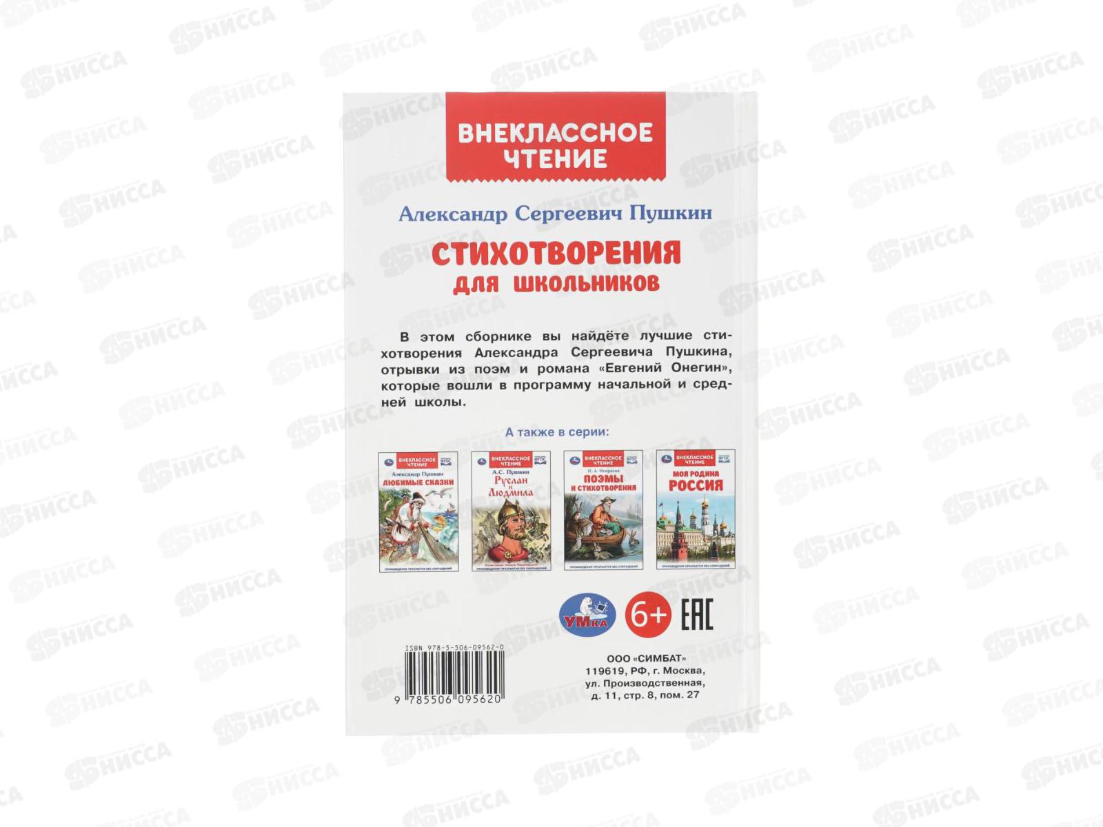 Книга 09562-0 Умка: Стихотворения для школьников. Пушкин А., 128стр.