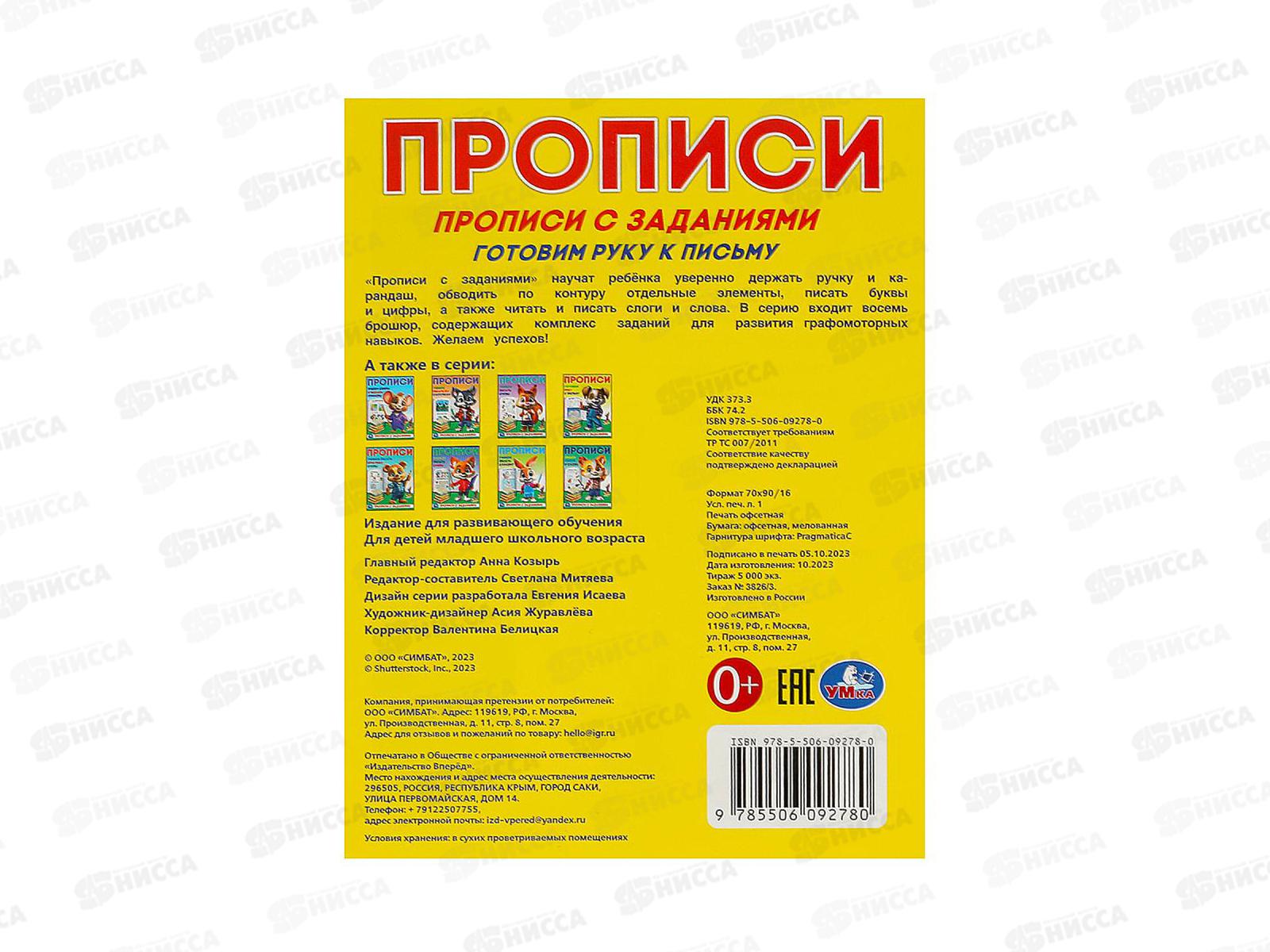 Прописи "УМКА" 09278-0 Готовим руку к письму, с заданиями 162х215мм*50