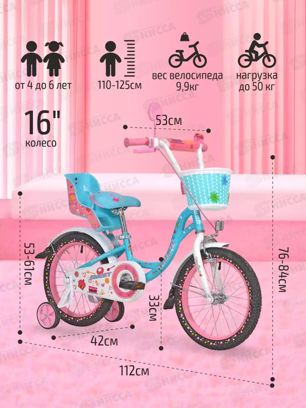 Велосипед 16" RUSH HOUR SWEET бирюзовый, 283886