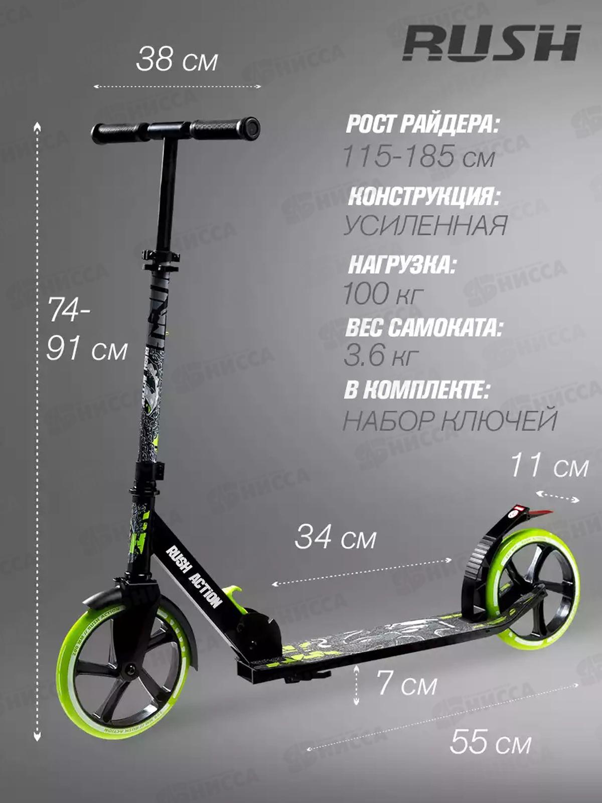 Самокат 2-х колесный 200мм Sprut, до 100кг, 386354 RUSH ACTION гб